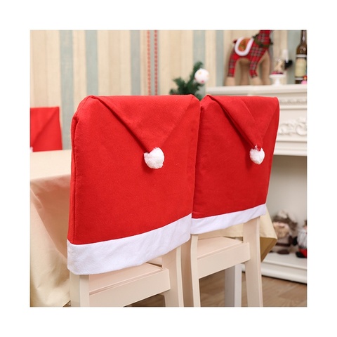 Venta al por mayor clásico rojo Santa sombrero silla cubierta Navidad temporada Decoración