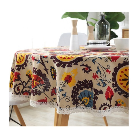 סיטונאי עגול שולחן בד רחיץ מודפס המנדלה פרחוני תחרה לקצץ קצה שולחן בד